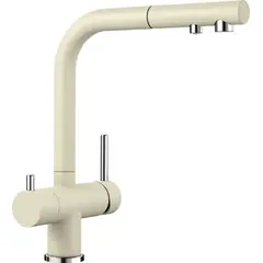 Смеситель Blanco FONTAS-S II 526672 удобен, практичен, современное решение Раздельное управление: рычаг для холодной и горячей воды справа и рычаг для фильтрованной воды слева Компактность и практичность: со смесителем нет необходимости делать дополнительное отверстие для подачи фильтрованной воды Смеситель blanco с питьевой водой, прекрасное сочетание с мойками