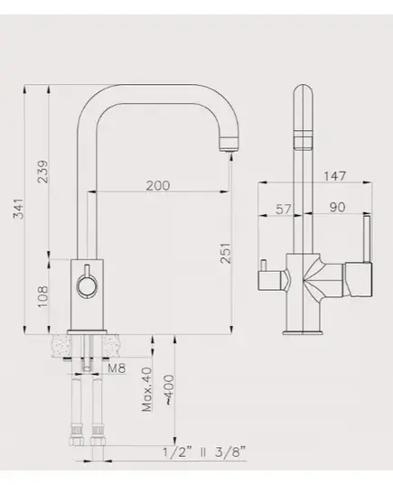Левый рычаг - фильт. вода/ Правый - гор.| хол. вода.