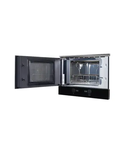 Оборудование будет удобно разместить даже на небольшой кухне, ведь за счет ее габаритов, техника не займет много места: высота — 39 см, ширина — 59,5 см, глубина — 33,6 см. Двухслойное стекло дверцы защищает человека от ожогов при случайных касаниях в процессе готовки. Функция блокировки от детей позволит ограничить доступ и препятствует внезапному включению устройства.