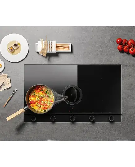 Варочная панель с вытяжкой Elica UNPLUGGED BL/A/90 объединяет в себе четкий внешний вид, разработанный для умного разделения двух зон: приготовления пищи и управления. Поворотные переключатели придают устройству профессиональный, надежный и высококачественный вид. Простая и комфортная очистка варочной панели гарантируется центральной стеклянной заслонкой , которая скрывает зону вытяжки и активирует ее только при необходимости. Изделие включается только при наличии кастрюль в варочных зонах: процесс нагрева не запускается или прекращается при отсутствии или снятии посуды. После выключения одной или нескольких конфорок на наличие остаточного тепла указывает специальный сигнал на дисплее. Индикатор насыщения фильтров подскажет, когда нужно провести чистку. Устройство оснащено тремя автоматическими функциями приготовления пищи: плавление, благодаря которому больше не нужно перемешивать ингредиенты, чтобы они не пригорели; подогрев, который гарантирует специальный уровень нагрева для медленного приготовления, например, для соусов и кремов, а также сохранение блюд в тепле, и томление на медленном огне, которое предотвращает пролития кипящей воды. Две зоны Bridge позволяют готовить еду, требующую использования посуды большого размера, объединяя две смежные зоны, и гарантируя равномерное приготовление.