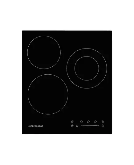 Электрическая варочная панель Kuppersberg ECS 402 относится к типу hi-light, т.е. нагрев идёт от традиционного ТЭНа. Такая техника достаточно экономична, поскольку её КПД, в среднем, равен 70% (в то время как у газовых моделей этот коэффициент редко достигает 60%). На ширине в 52 см разместилось 3 конфорки разной мощности и диаметра. При этом правая относится к двухконтурной. На ней удобно использовать посуду с широким дном, а её разогрев происходит быстро и равномерно.
