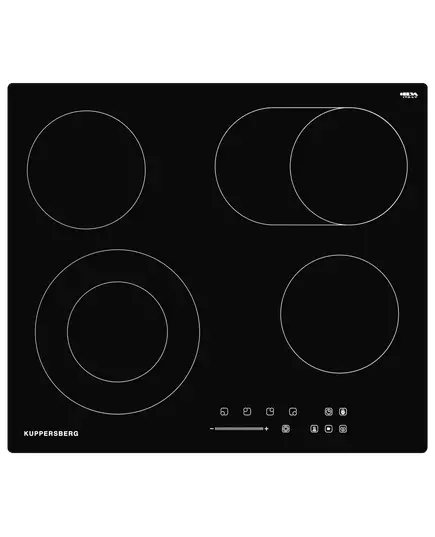 Электрическая варочная панель Kuppersberg ECS 627 включает в себя 2 зоны расширения для нестандартной, посуды одна из которых «утятница». Материал панели стеклокерамика, которая обладает такими свойствами как: гладкая текстура, устойчивость к резким перепадам температуры, простота ухода. Благодаря функции слайдер можно легким движением настроить температуру панели.