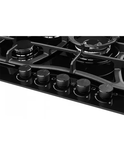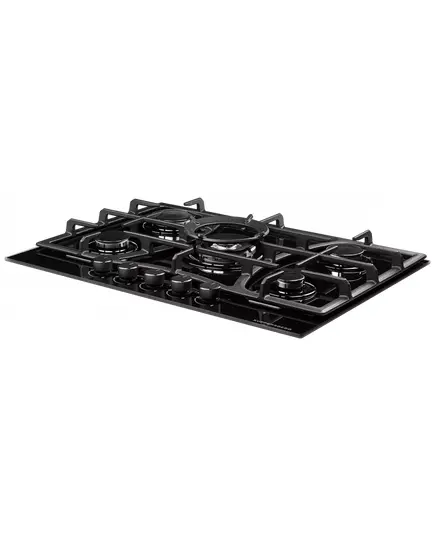 Газовая варочная панель Kuppersberg FG 73 B выполнена из закаленного стекла черного цвета. Такой материал достаточно прост в уходе, характеризуется долгим сроком эксплуатации, устойчив к температурному воздействию и не требует особых усилий. Выполненный в Турции прибор имеет 5 конфорок и расширенные габариты: его ширина составляет 71 см, глубина — 51 см, а высота 4,5 см. Работать с этой моделью достаточно комфортно, так как сила нагрева видна невооруженным глазом — по интенсивности огня. Горелки с двойной коронкой позволяют увеличить нагрев в зависимости от диаметра посуды.