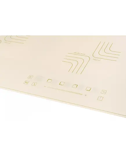 Индукционная варочная панель Kuppersberg ICS 606 C — великолепный образец изящества и функциональности. Сложно не обратить внимание на дизайн этой модели. Она выполнена в молочно-бежевом цвете с золотистой сериографией. Её геометрия напоминает стиль «Великого Гетсби». Помимо сенсоров и небольших дисплеев в навигации участвует удобный слайдер. Теперь достаточно провести вдоль него пальцем, чтобы настроить работу устройства. В качестве материала поверхности использована передовая японская стеклокерамика NEG.