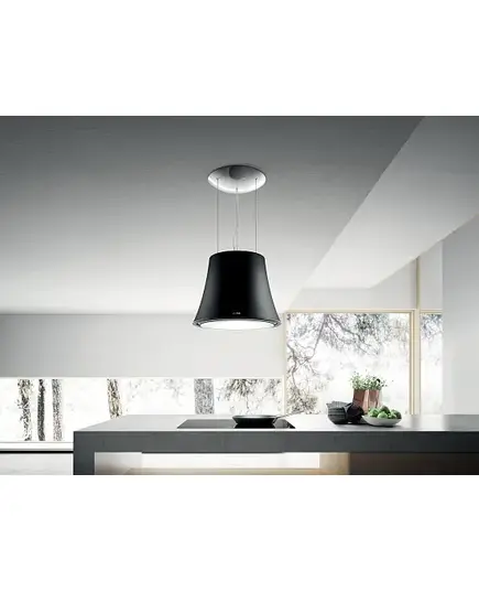 Дизайн. Легендарная подвесная вытяжка-люстра ELICA AUDREY SENSE ROCK/F/50 выполнена в матовом черном цвете. На нижней кромке расположена панель управления, все функции которой также включаются с пульта ДУ, входящего в комплект. Потолочный монтаж позволяет установить вытяжку над кухонным островком. Для максимальной эффективности и особого дизайнерского эффекта в помещении может быть установлено несколько вытяжек-люстр.