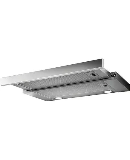 Функционал. Устройство включается путем выдвижения передней панели. Переключатели Touch control гарантируют удобное управление тремя основными и одной интенсивной скоростями. Модель может работать в режиме отвода и рециркуляции. Вытяжка оснащена таймером с автоматическим отключением по истечении определенного срока; индикатором насыщения фильтра; дисплеем, на котором выводятся сведения о работе прибора.