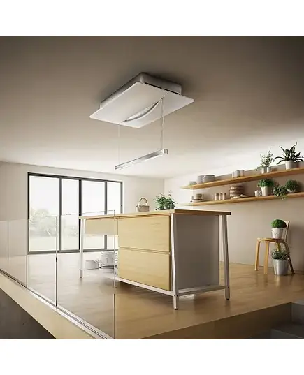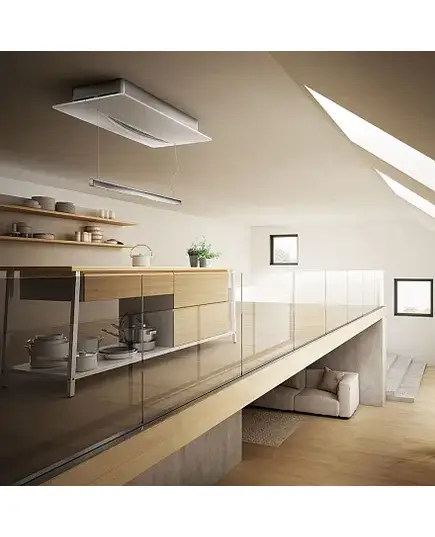 Дизайн. Островная вытяжка ELICA EMPTY SKY WH/A/120 представлена в белом цвете. Модель функционирует только в режиме отвода. Подвесная штанга эффектно дополняет дизайн, из-за чего прибор органично впишется в интерьер стиля хай-тек и лофт.