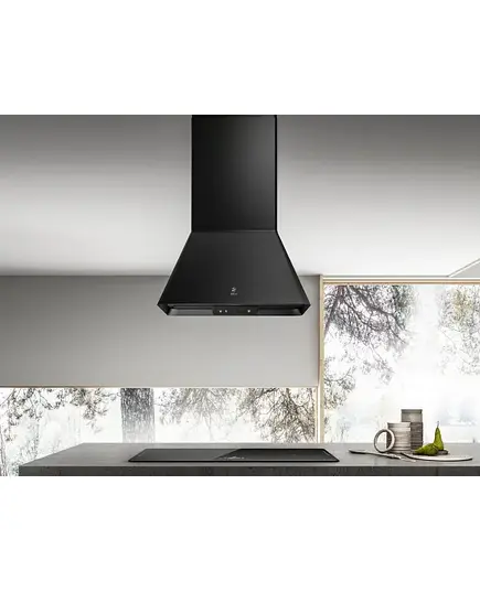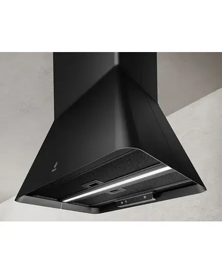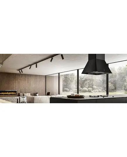 Вытяжка Elica IKONA BL MAT/A/60 — невероятно стильная и эффектная модель, выполненная в черном цвете. Она предназначена для потолочного монтажа и может быть установлена как над обычной варочной панелью, так и над кухонным островом, что существенно расширяет возможности ее применения. Она способна работать как с подключением к вентиляции, так и полностью автономно, пропуская воздух через систему фильтров — один из них, угольный, необходимо докупить и периодически заменять, тогда как алюминиевый жироулавливающий достаточно время от времени мыть в посудомоечной машине.