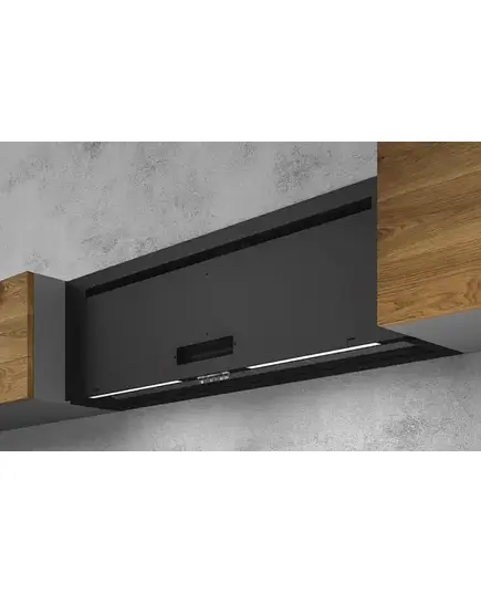 У данного устройства есть электронная панель управления, которая представлена набором кнопок. Имеется три варианта скорости, у каждого из которых разная интенсивность забора воздуха. Интенсивный режим гарантирует быструю нейтрализацию любых загрязнений воздуха на кухне. Высокая производительность делает устройство подходящим для просторных помещений.