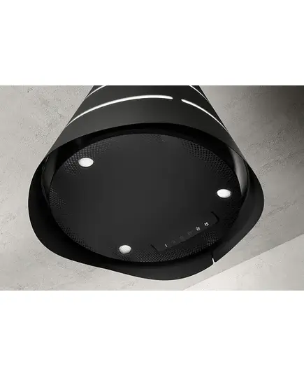 Вытяжка Elica WAVE UX BL MAT/F/51 относится к островному типу монтажа, что позволяет разместить ее по всей площади потолка. Крепеж для установки прибора на стену приобретается отдельно. Устройство заявлено в классическом черном матовом цвете, благодаря чему отлично вписывается в современный кухонный интерьер. Стильный купол имеет минималистичный дизайн, что подчеркивает эффектный внешний вид. Три светодиодные лампы излучают нейтральный, при этом яркий свет, что добавляет комфорта в эксплуатации техники, особенно в темное время суток.