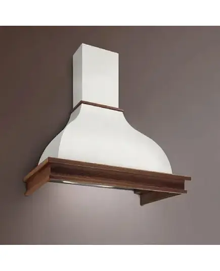 Дизайн: настенная вытяжка Falmec IRIS MALIZIA 120 noce (600) S представлена в классическом белом цвете и декорирована рамой, изготовленной из массива дерева, тонированного в оттенок «вишня». Лакированная поверхность «Verniciato» удачно вписывается в оформление стиля «кантри».