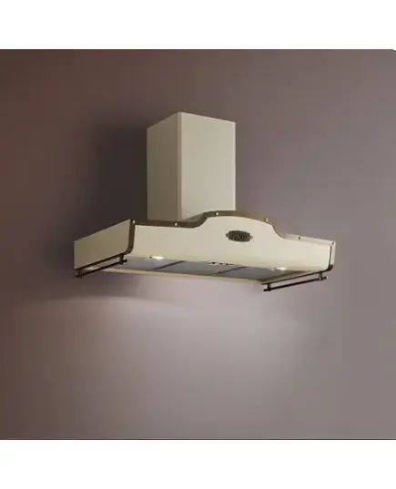 Дизайн: настенная вытяжка Falmec WEST 60 avorio (600) S выполнена в стиле «кантри» и представлена в цвете слоновой кости. Края декорированы латунными полосами. Оформление модели имитирует ковбойскую шляпу. Корпус изготовлен из окрашенной стали.