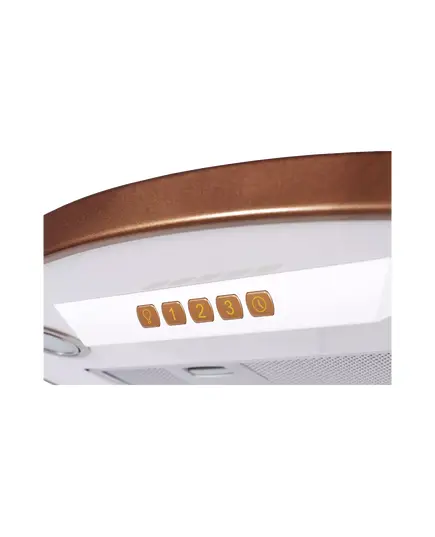 Элегантный белый корпус модели BONA 60 W Bronze дополнен бронзовой отделкой и механической панелью управления. Ретро-образ вытяжки гармонирует со стилизованными интерьерами. Жироулавливающие фильтры легко снимаются для очистки. Алюминиевая решетка защищает внутренние детали от налипания жировых частиц, что повышает эффективность работы и увеличивает срок службы прибора. Низкий уровень шума, экономичное освещение и регулируемая скорость — одни из основных преимуществ модели.