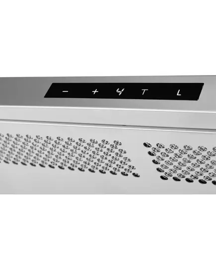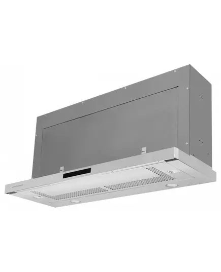 Встраиваемая вытяжка Kuppersberg SLIMBOX 90 X выполнена в цвете нержавеющей стали. Монтируется в подвесной шкаф в нишу шириной 86 см. При помощи сенсорной панели производится переключение скоростей и включение подсветки.
