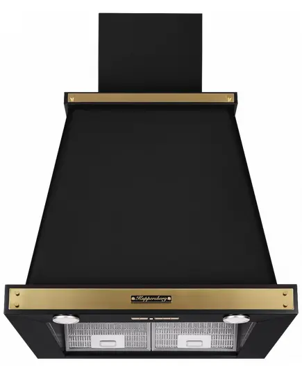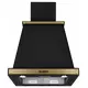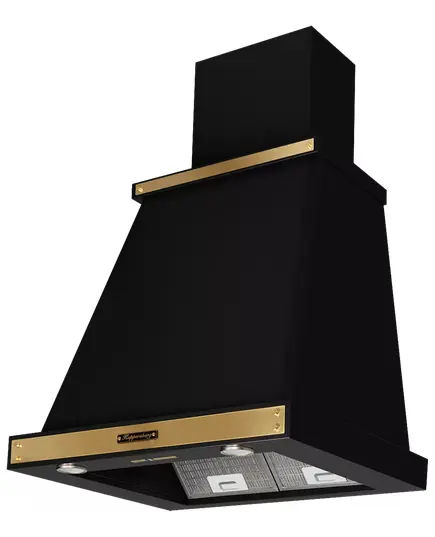 Аппарат выполнен в классическом дизайне в цвете «антрацит» с бронзовыми элементами. Сочетание таких оттенков смотрится очень эффектно и стильно. Светодиодное освещение — это наиболее современная тенденция, по яркости оно не уступает лампам накаливания, зато во многом превосходит их по экономии электроэнергии, продолжительности срока службы, безопасности. Количество скоростей — пять. Тип управления — электронный с кнопочными переключателями, которые отвечают за включение и выключение вытяжки, переключение скоростей вращения вентилятора, активацию и освещение.