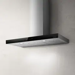 Изящная вытяжка, выполненная в черном цвете, имеет минималистичный дизайн, что делает модель идеальной для встраивания в современный кухонный интерьер.