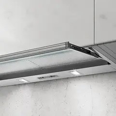 Модель оснащена удобным кнопочным управлением, тремя скоростями вытяжного вентилятора и освещением